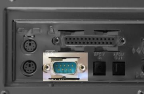 Porta serial: conector em forma de D com 9 pinos, quase impossível de encontrar em um PC moderno. A foto acima é de uma velha placa-mãe com um processador Pentium 4. Apesar disso há um grande número de instrumentos de laboratório, sistemas de ponto de venda e hardware especializado (como sensores remotos e sistemas de controle industrial) que ainda as utilizam. Hoje em dia é possível comprar "adaptadores" que se plugam a uma porta PCI na máquina e trazem uma porta serial, ou em alguns casos usar um adaptador Serial-USB, para se comunicar com estes aparelhos.